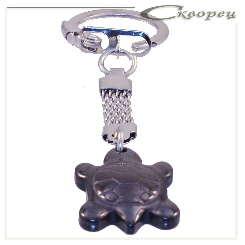 Брелок гематит Черепашка, форма - черепашка, размер - 18*26*4 мм, фурнитура - замок плоский плетёный, вес - 0,01 кг.