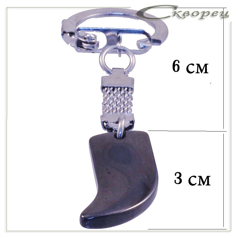 Брелок гематит Клык, форма - клык, размер - 12*26 мм, фурнитура - замок плоский плетёный, вес - 0,01 кг.