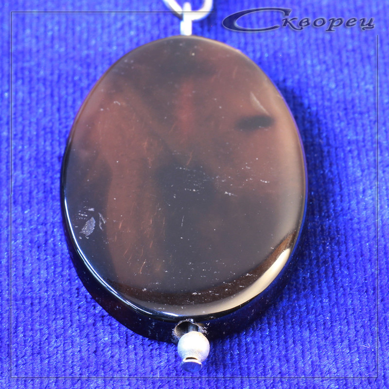 Брелок овальная таблетка из обсидиана, форма - овальная таблетка, размер - 5х25х35 мм, фурнитура - замок с плоской плетенкой, вес - 0,010 кг.