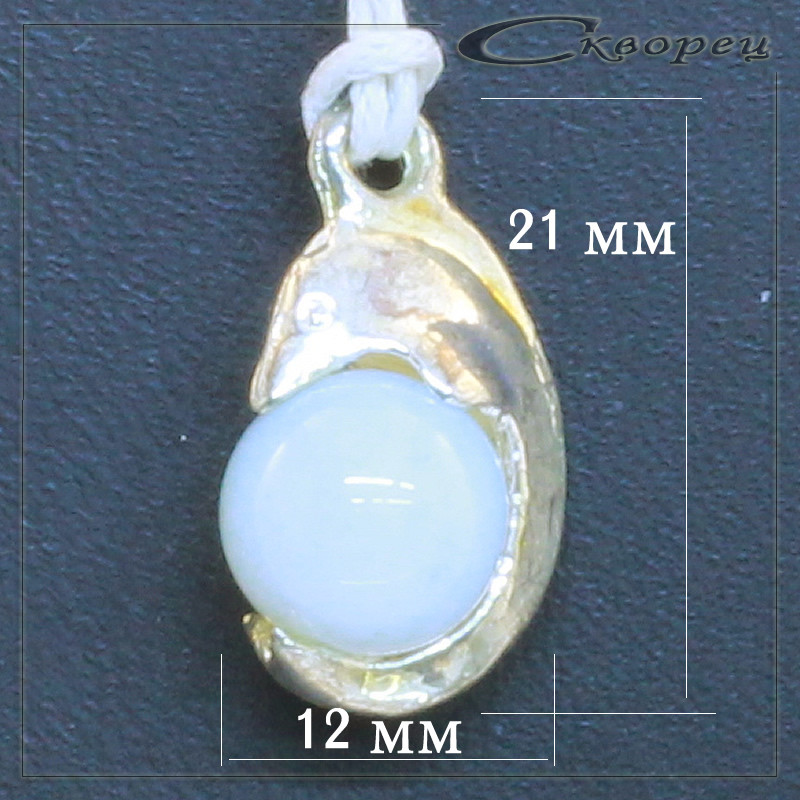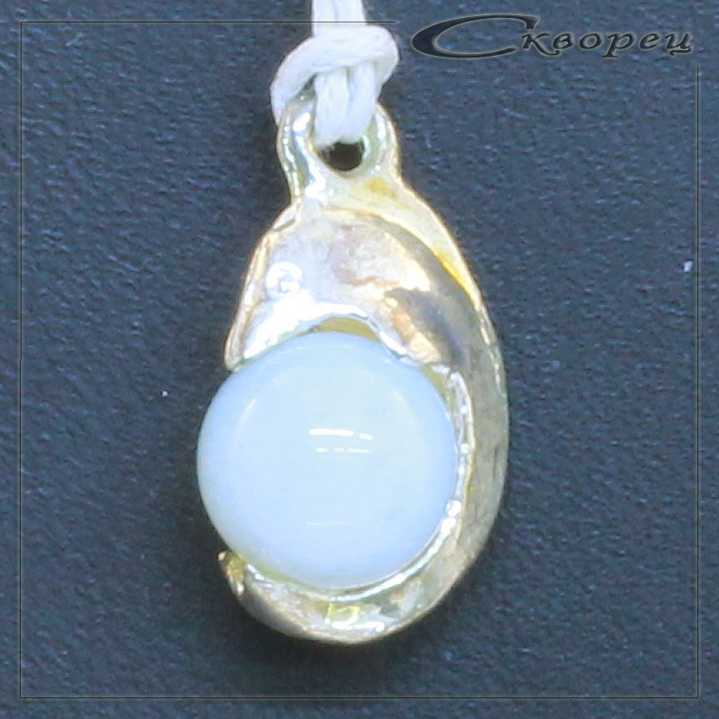 Кулон лунный камень Дельфинчик с шариком, форма кулона - шарик 10 мм в дельфинчике из литьевого металла под серебро, размер кулона - 20*12*10 мм., на плетёном шёлковом шнурке с пропиткой диаметром 1 мм. и длинной 45 - 50 мм., шнурок в подарок, вес - 0,01 кг..