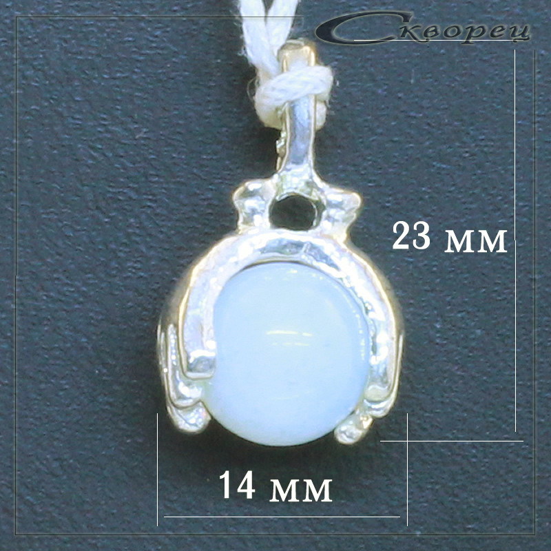 Кулон лунный камень Руки с шариком, форма кулона - шарик 10 мм в вдух кистях рук из литьевого металла под серебро, размер кулона - 20*14*10 мм., на плетёном шёлковом шнурке с пропиткой диаметром 1 мм. и длинной 45 - 50 мм., шнурок в подарок, вес - 0,01 кг..