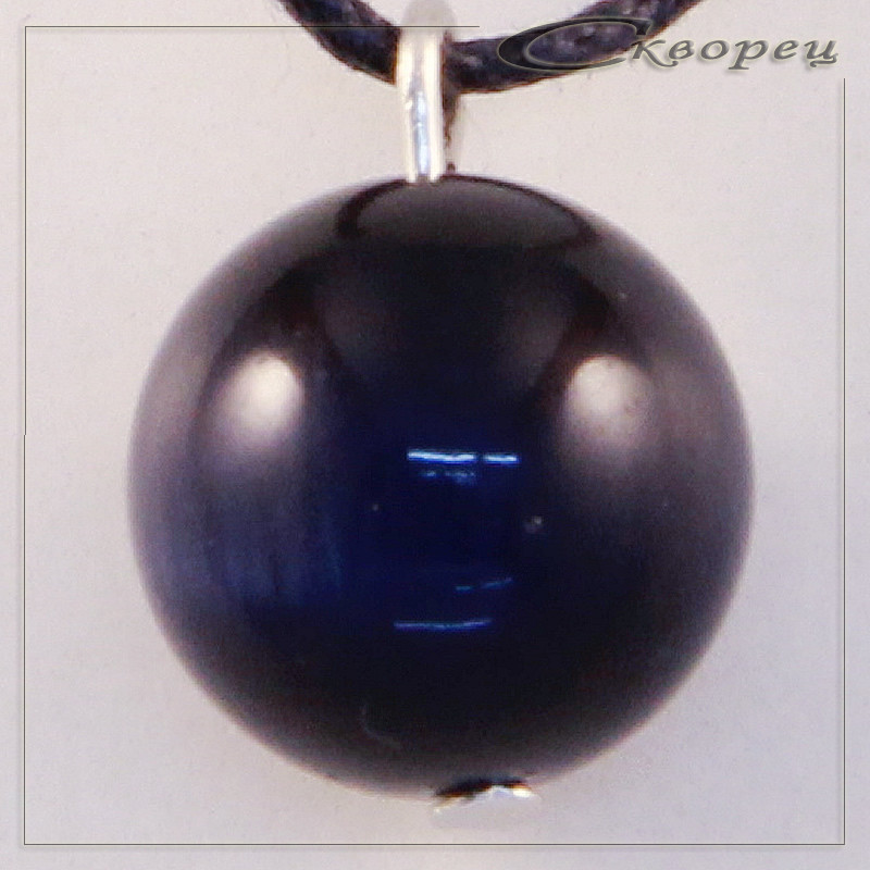 Подвеска шарик черно-синий кошачий глаз, форма - шарик размером 12 мм, шнурок толщиной 1 мм, длинной 45 - 50 мм, в подарок, вес - 5 гр.
