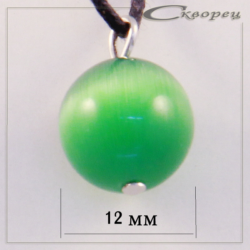 Подвеска шарик темно-зеленый кошачий глаз, форма - шарик размером 12 мм, шнурок толщиной 1 мм, длинной 45 - 50 мм, в подарок, вес - 5 гр.
