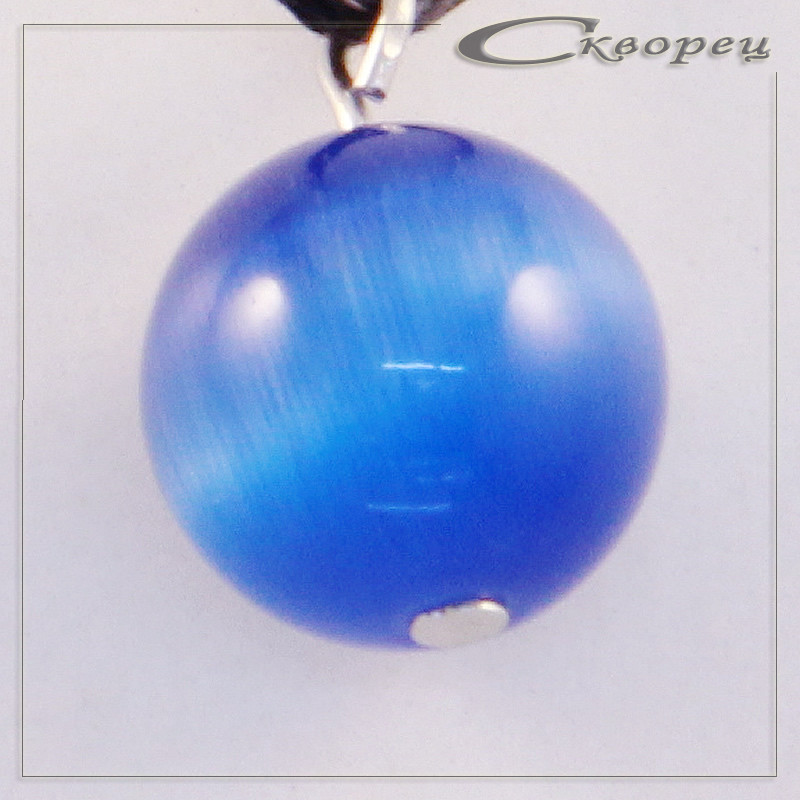 Подвеска шарик синий кошачий глаз, форма - шарик размером 12 мм, шнурок толщиной 1 мм, длинной 45 - 50 мм, в подарок, вес - 5 гр.