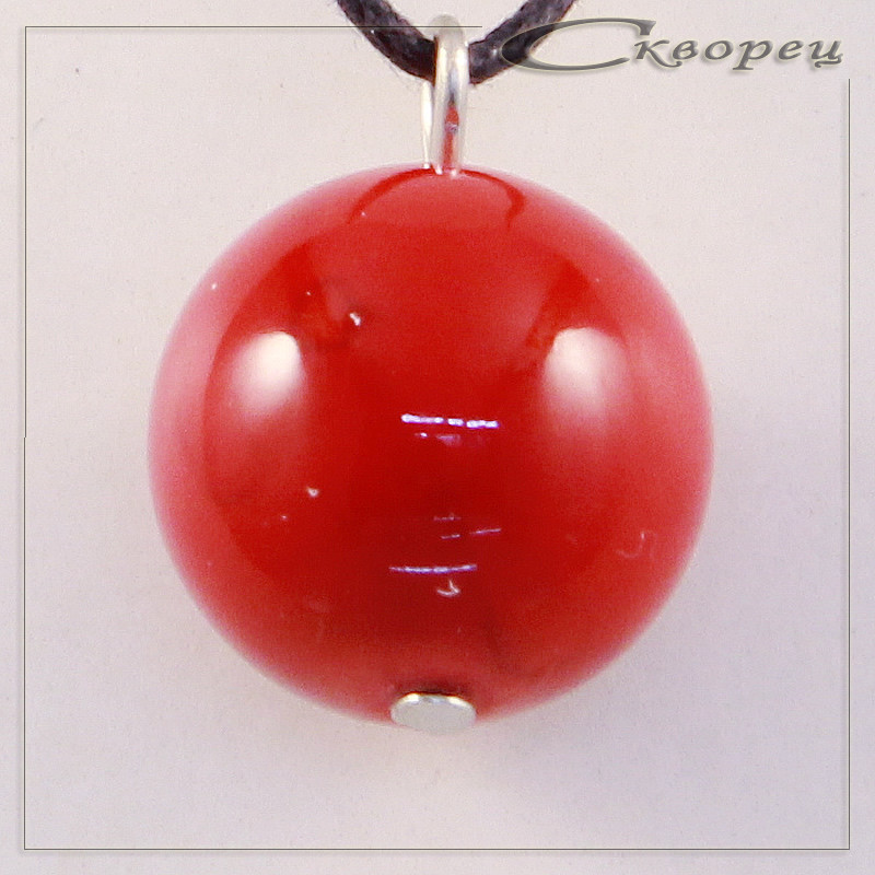 Подвеска шарик красный коралл, форма - шарик размером 14 мм, шнурок толщиной 1 мм, длинной 45 - 50 мм, в подарок, вес - 6 гр.