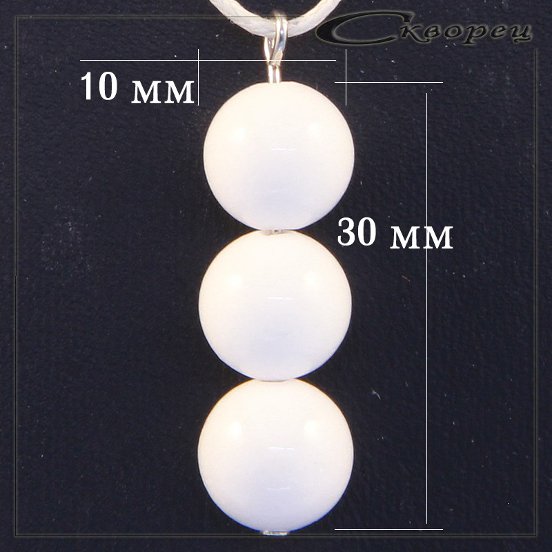 Подвеска три шарика белый агат, форма - шарик размером 10 мм, шнурок толщиной 1 мм, длинной 45 - 50 мм, в подарок, вес - 5 гр.