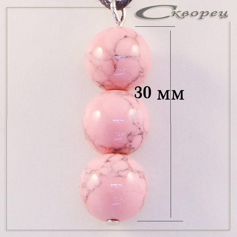 Подвеска три шарика родонит, форма - шарик размером 10 мм, шнурок толщиной 1 мм, длинной 45 - 50 мм, в подарок, вес - 5 гр.
