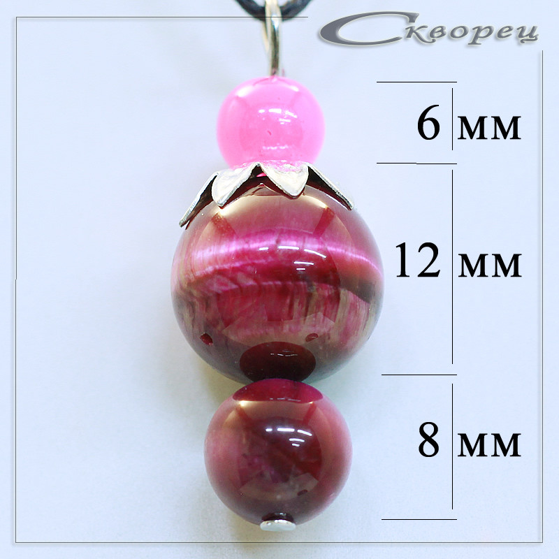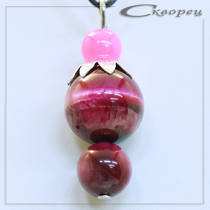 Подвеска ягодка Канзаши фиолетовый, рекорирован накладкой в виде листьев, форма - подборка шариков размером 12 мм и 8 мм, акцент - ограненый шарик из кварца 6 мм, шнурок 45 см в подарок, вес - 5 гр.