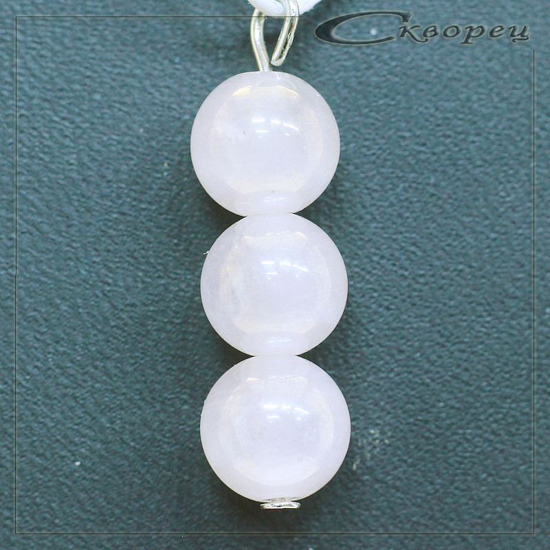 Подвеска три шарика 8 мм из кварца розового, форма - набор трех шариков размером 8 мм, шнурок 45 см в подарок, вес - 5 гр.