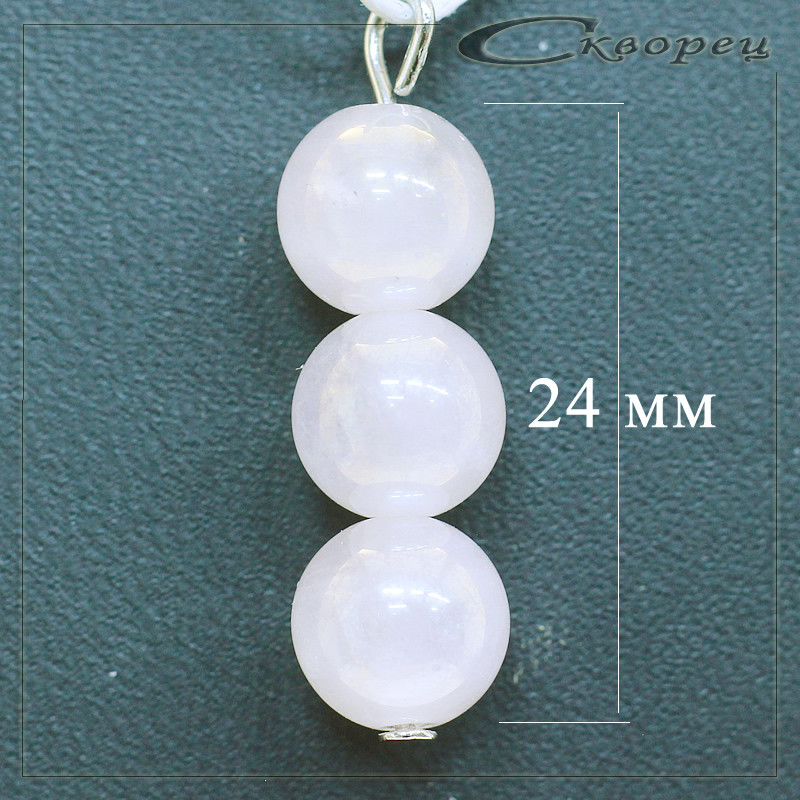 Розовая подвеска из натурального кварца выполнена в виде трёх соединённых шариков диаметром 8 мм. Элегантный аксессуар дополнит образ благодаря природному блеску камня и нежному оттенку.