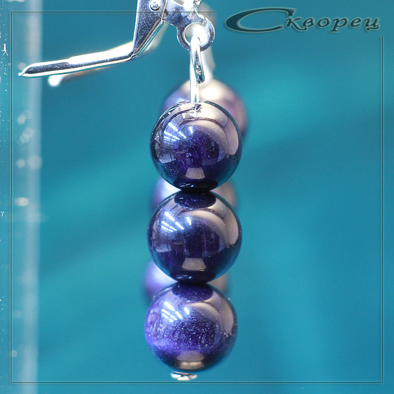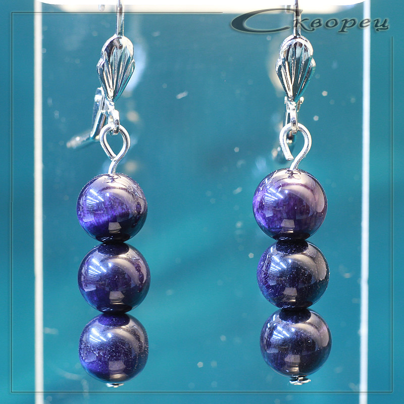 Серьги три шарика 8 мм Канзаши синий, швенз из немагнитного металла под серебро, размер шариков 8 мм, вес - 6 гр.
